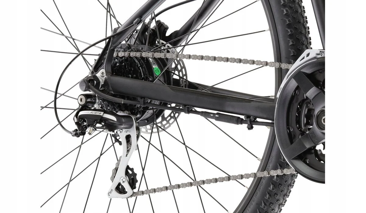 KROSS Hexagon Boost 1.0 to doskonały wybór dla każdego szukającego roweru uniwersalnego. Sprawdzony napęd Shimano z 24 przełożeniami zapewnia bezproblemową i tanią eksploatację. Tylna przerzutka z grupy Acera to trwała i sprawdzona konstrukcja, która zapewnia płynną i responsywną zmianę przełożeń również w trudniejszym terenie.By zapewnić pewność hamowania w każdych warunkach zamontowane zostały hydrauliczne hamulce tarczowe Shimano. Zapewniają one dużą większą siłę hamowania niż klasyczne hamulce v-brake. To także dużo większa i precyzyjniejsza modulacja siły hamowania niż w przypadku mechanicznych hamulców tarczowych.